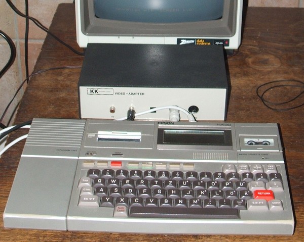 Der Video-Adapter heißt EVA (EPSON Video Adapter) und wurde von der Firma KK-Systems in den 80-er Jahren gebaut. Ich habe so einen Adapter bisher nirgendwo wieder gesehen. Von EPSON wurde ein Video-Adapter zwar im Handbuch erwähnt, wohl aber in Deutschland nicht angeboten.
