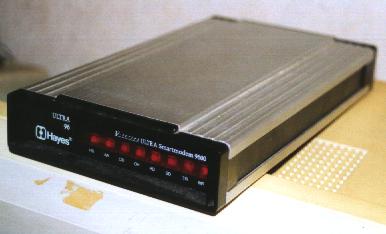 | Im Computermuseum hat der Rechner noch eine besondere Aufgabe: Über ein externes 87-er Hayes Ultrasmart Modem mit 9600 baud (für damalige Verhältnisse superschnell) ist er an meiner internen Nebenstellentelefonanlage als "DEMO-Mailbox" konfiguriert. Da die modernen Boxen mit 300 baud Akustikkopplern oft nichts mehr anfangen können, benutze ich ihn, um die Funktion eines solchen Urgesteins der DFÜ zu demonstrieren. Das geht dann zum Beispiel mit dem Amstrad PPC 512 und einem Akustikkoppler. | ![]() |